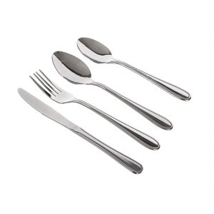 24dílná sada příborů APETIT DAPHNE se skládá: vše po 6 ks - nůž 20,9 cm, vidlička 19 cm, lžíce 18,8 cm, čajová lžička 13,5 cm.