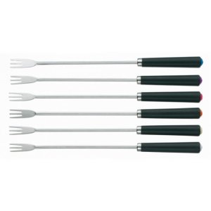 Fondue vidličky jsou nezbytnou součástí pro přípravu masového, sýrového a čokoládového fondue, s označením na konci rukojeti pro snadné rozlišení.