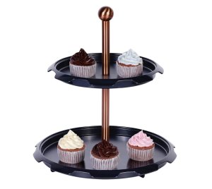 - materiál: chromovaná ocel s barevnou úpravou, plast- rozměry:- velký tác pr. 30,5 cm- malý tác pr. 24 cm- výška: 33 cm- dvoupatrový etažér pro servírování či vystavení různých pokrmů- nejčastěji využívaný …