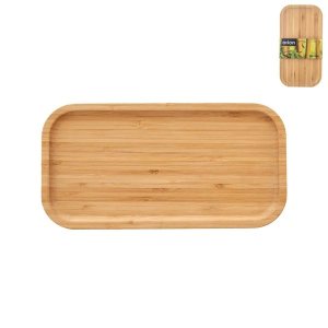 Bambusový podnos Orion - 25x 13 cm Servírovací tác se hodí k podávání jednohubek, chlebíčků, ale i koláčků nebo dezertů Materiál: bambusové dřevo Rozměry: 25x 13x 1,5 cm