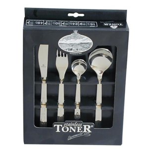 24 dílná sada obsahuje vidličky, nože, lžičky a lžíce.