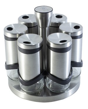 - materiál: nerezová ocel / sklo- sada obsahuje: stojan, 6x kořenka- objem kořenky: 120 ml- nastavitelná velikost otvoru, vhodné na nejrůznější druhy koření- otočný stojan s rukojetí uprostřed pro pohodlnou …