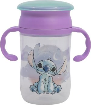 Dětský tréninkový hrnek s víčkem a úchyty s motivem Stitche o objemu 395 ml.