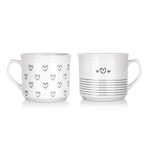 Hrnek 660 ml, SRDÍČKA ČER, keramický, mix. objem: 660 ml průměr: 11,2 cm výška: 10 cm materiál: keramika barva: bílá dekor: černá srdíčka Hrnek BIG s perokresbou černých srdíček.