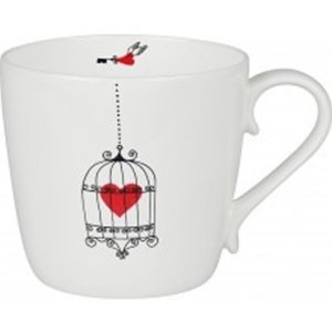 Hrnek včetně nerezového sítka a porcelánového víčka.