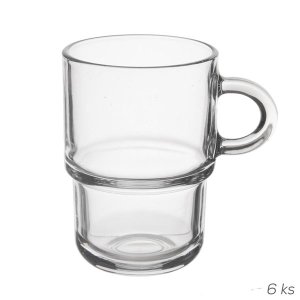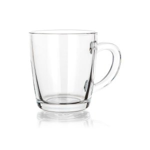 Hrnek objemu 250 ml je klasický hrnek s uchem vyrobený z čirého skla.