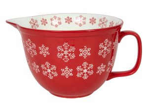 MISKA ČERVENÁ S BÍLÝMI SNĚHOVÝMI VLOČKAMI 30*22*15