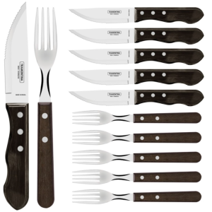 12dílný steakový set PARTY, steakové příbory s dřevěnou rukojetí, zubaté ostří pro snadné krájení masa.