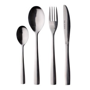 24dílná sada příborů DESMA. Sada obsahuje: 6x polévkovou lžíci, 6x vidličku, 6x jídelní nůž a 6x čajovou lžičku .