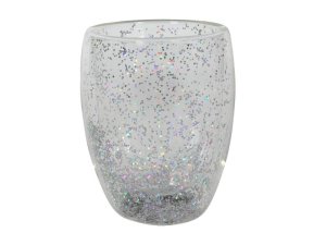 SKLENICE S DVOJÍM SKLEM S KONFETY 350 ML, STŘÍBRNÁ