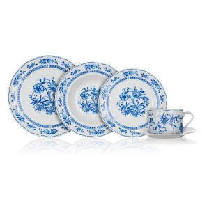 30dílná jídelní sada s tradičním dekorem ONION obsahuje: 6 x hluboký talíř, 6 x mělký talíř, 6 x dezertní talíř, 6 x podšálek, 6 x šálek.