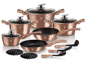 15dílná sada značky Berlingerhaus edice Rosegold Metallic Line, mramorový povrch, Turbo indukční dno, možnost vložení do trouby do teploty 160 °C, 3 ks nylonového náčiní.
