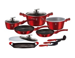 Bohatě vybavená sada nerezového nádobí od značky Blaumann.