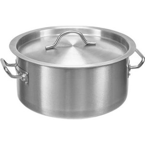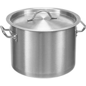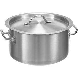 Celonerezový hrnec Gastro s pokllicí se zesíleným dnem, vhodný pro vaření větších objemů, ať už v gastro provozu nebo domácnosti.