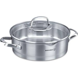Kvalitní nerezový nízký kastrol pro přípravu oblíbených pokrmů.