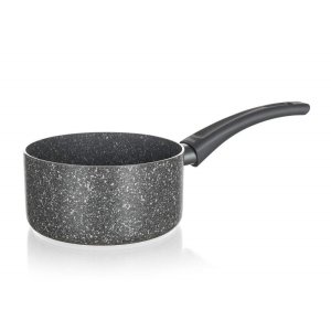 Hliníkový presovaný rendlík GRANITE 16 x 8 cm s nepřilnavým 2vrstvým povrchem v granitovém dekoru, šedou bakelitovou rukojetí se soft-touch povrchovou úpravou, bez poklice, s plně indukčním dnem.