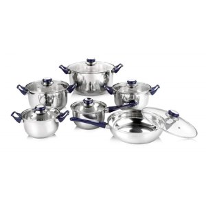 Bohatě vybavená sada nerezového nádobí od značky Blaumann.