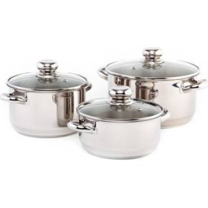8dílná sada nerezového nádobí EMBASSY obsahuje: rendlík 16 x 8cm, 1,6 l se skleněnou poklicí, kastrol 18 x 9cm, 2,3 l se skleněnou poklicí, kastrol 24 x 12,5cm, 5,4 l se skleněnou poklicí, vysoký hrnec …