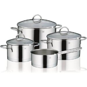 Sada nádobí 8dil., nerez, SWING. sada obsahuje: - hrnec pr. 16 x 10 cm + poklice - hrnec pr. 18 x 11 cm + poklice - hrnec pr. 20 x 12 cm + poklice - hrnec pr. 24 x 14 cm + poklice materiál: nerez tloušťka …