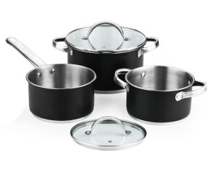 -indukční nádobí -materiál: nerezová ocel-lesklý povrch-stříbrné celonerezové rukojeti-skleněné poklice-vnitřní odměrná stupnice-hrnce:- 16 x 14,5 cm, 2,9L- 18 x 16 cm, 4,0L- 20 x 17,5 cm, 5,4L- 24 x …