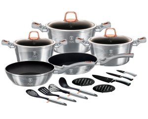 - Sada hrnců a náčiní ze série Aquamarine Metallic zaujme nejen nepřehlédnutelným designem, ale především svými jedinečnými vlastnostmi- doménou této sady je 3vrstvý nepřilnavý povrch s mramorovým designem, …