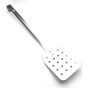 Děrovaná leštěná obracečka z jednoho kusu s rovnou hranou.