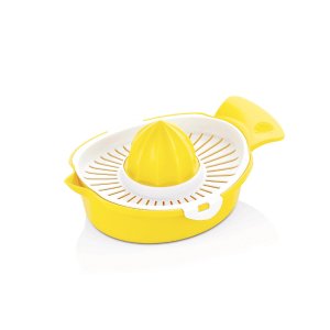 - plastový odšťavňovač se silikonovými prvky vhodný k odšťavňování citronu a jiných citrusů - netradiční design spolu s praktickým použitím - průměr 7.5 a výška 16.5 cm - EAN 5999563640592