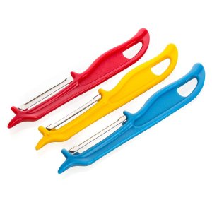 Škrabka typ "Y" TINTO čepel 5 cm kov, rukojeť PH. celková délka: 15 cm šířka čepele: 5 cm materiál: kovová čepel, plastová rukojeť Škrabka s příčnou čepelí TINTO je skvělá na čistění mrkve, okurek, křenu …