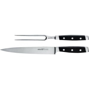 Moderní kuchyňská sada skládající se z kuchyňského nože a vidličky, jež vám poslouží při zpracování libovolného pokrmu.