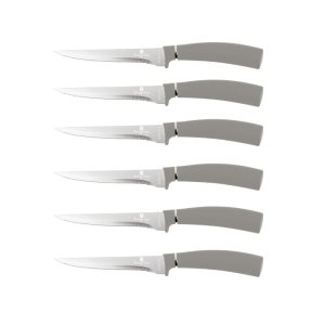 - Materiál: nerezová ocel- 6 ks steakových nožů 11,5 cm- barva: šedá Aspen- Ergonomicky navržená odolná, nová rukojeť z měkčeného plastu- Titanové čepele- Laserem ostřené čepele- Stylové
