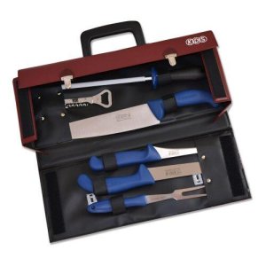 2690 souprava kuchařská 6díl. hmotnost: 1180 g sada obsahuje: 1655 nůž řeznický vykosťovací 5 1670 nůž řeznický 7 2643 nůž porcovací 10 3022 vidlice kuchyňská 3227 ocílka 3445 otvírač číšnický Sada obsahuje …