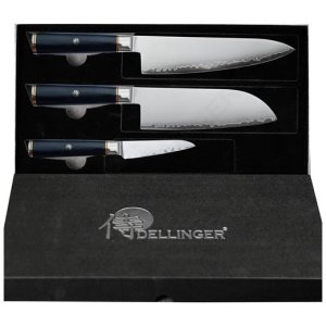 - Materiál: nerezová ocel s černou nepřilnavou vrstvou- Kuchařský nůž 20 cm- Nůž Santoku 17,5 cm- Užitkový nůž 12,5 cm- Nůž na okrajování 9 cm- Barva: černo růžovo-zlatá black roseREGISTROVANÝ DESIGN …