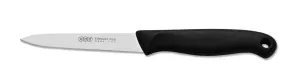 Univerzální nůž s nerezovou čepelí o délce 12, 5 cm, vyroben z kvalitní nerez oceli 18/8, rukojeť z tvrdého, odolného černého plastu, vhodný na běžné krájení potravin všeho druhu, vhodný do myčky na …