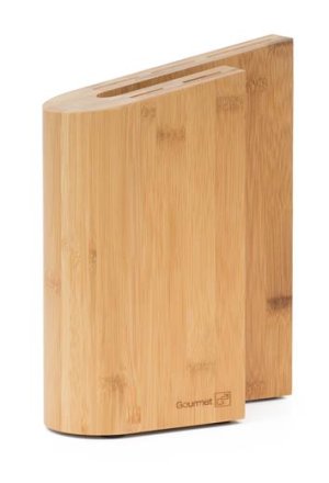 Stojan na nože z kvalitního bambusového dřeva o rozměrech 14 x 9 x 22 cm.