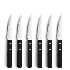 Kvalitní steakové nože s plastovou nýtovanou rukojetí, délka čepele 11 cm, síla čepele 1.2 mm.