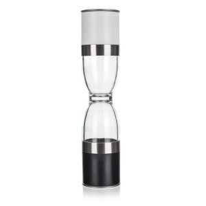 Mechanický mlýnek na sůl a pepř CULINARIA Duo je dodáván v nerezovém provedení, zásobníky jsou akrylové.