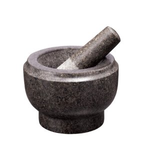 Hmoždíř s paličkou z přírodní žuly na drcení koření i bylinek.