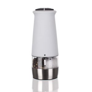 Mlýnek na koření elektrický 2 v 1, PH BÍ. výška: 17,5 cm průměr základny: 6,5 cm materiál: plast barva: bílá keramický mlecí systém možnost nastavení hrubosti mletí baterie 6 x AAA, nejsou součástí balení …