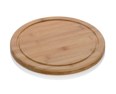 - materiál: bambusové dřevo- velmi odolný přírodní materiál s lehkou údržbou- drážka zabraňuje stékání šťávy na pracovní desku- hladký a snadno čistitelný povrch- průměr: 25 cm- výška: 1,8 cm