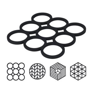 Podložka pod hrnec, mix tvarů, silikon ČER. mix tvarů: - čtverec 16 x 16 cm - hexagon 14 x 8 cm - kruh průměr 14 cm materiál: silikon barva: černá Kuchyňská podložka pod horké nádoby slouží k ochraně …