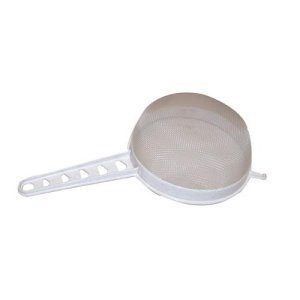 Plastový cedník s ručkou a očkem na zavěšení průměr 16 cm, síto cca 1.3 mm.
