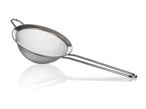 Plastový cedník průměr 7.5 cm s jemným sítkem.