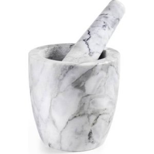 Tento mramorový hmoždíř si najde místo v každé kuchyni jako užitečný pomocník i ozdoba.