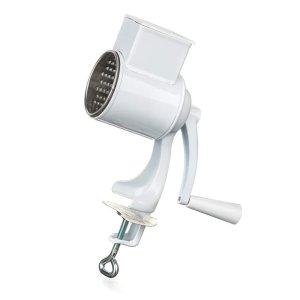 Mlýnek pro snadné a rychlé mletí sýrů a ořechů, vyroben z kovu a nerezavějící oceli, snadné použití a údržba, 5 ks výměnných nástavců - na strouhanku, sýr, zeleninu či ovoce na plátky apod., vhodné do …