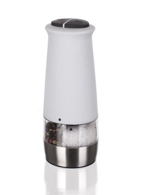 Mlýnek na sůl a pepř . Mlýnek je poháněný šesti tužkovými bateriemi AAA stiskem tlačítka.