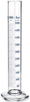 Odměrný válec 500 ml se 6hrannou patkou a výlevkou, skl.