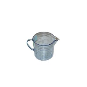 Kulatý čirý hrnek s výlevkou. Značení gramů a mililitrů.