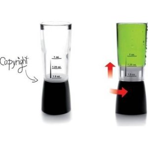 Praktická odměrka na alkohol se snadno nastavitelnou mírou.
