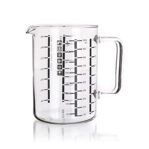 Kuchyňská odměrka 1 l se vyrábí z tvrdého boritokřemičitého skla, které je velmi odolné (mechanicky i teplotně).