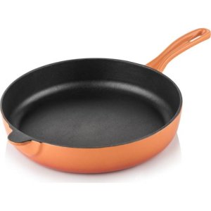 Oranžová litinová pánev se smaltovaným povrchem je ideálním řešením pro všechny možné způsoby vaření.